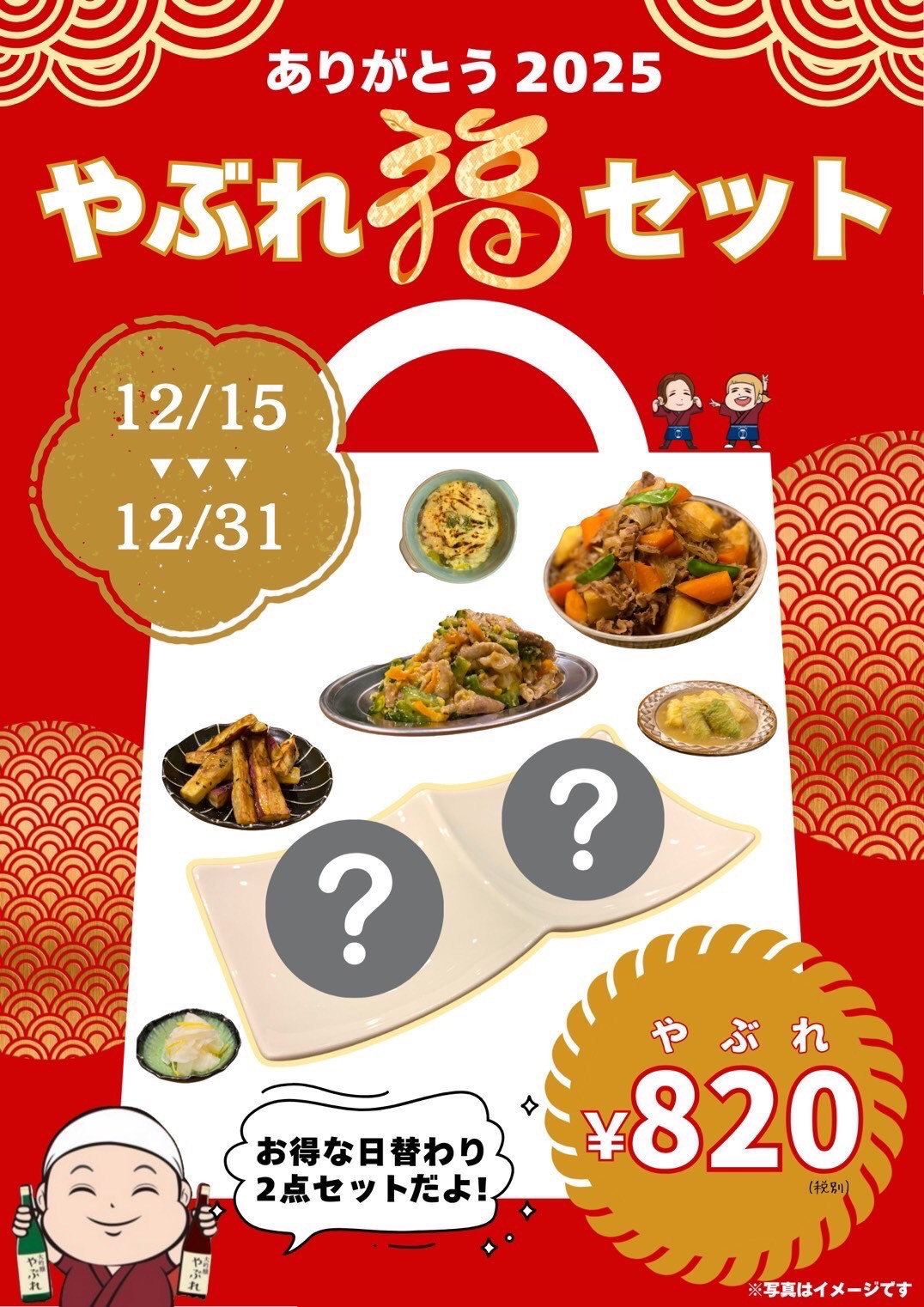 〇15日~31日 「ありがとう2025 やぶれ福セット」¥820(税別) ※2点盛りセット